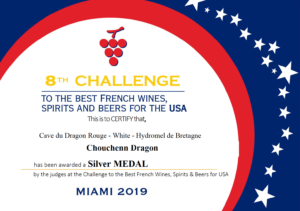 Honoré de la médaille d’Argent lors du 8ème Challenge des Meilleurs Vins, spiritueux et bières françaises pour les USA à Miami en 2019 !