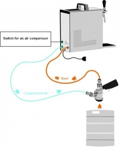 - l'air compressé pousse la bière à l'extérieur du fût