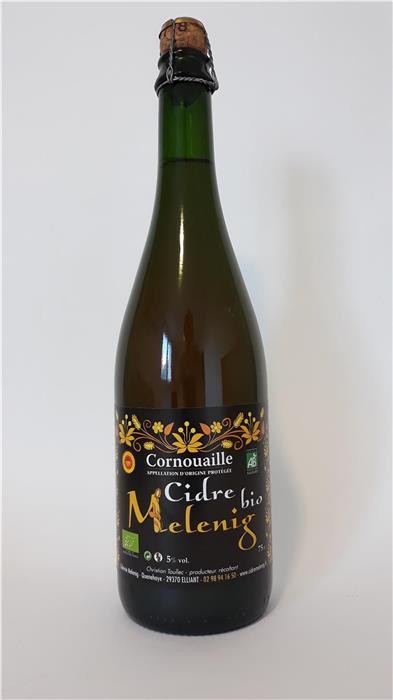 Melenig signifie en breton "petit jaune". C'est le surnom qu'on donne aux habitants d'Elliant, en raison des broderies à dominante jaune qui ornent leurs costumes traditionnels. Ce sont ces motifs de broderies qui sont repris sur nos étiquettes. Le pays Melenig, c'est donc le pays d'Elliant, un pays fier de ses traditions, de son caractère, de ses paysages, ...et de son cidre ! .